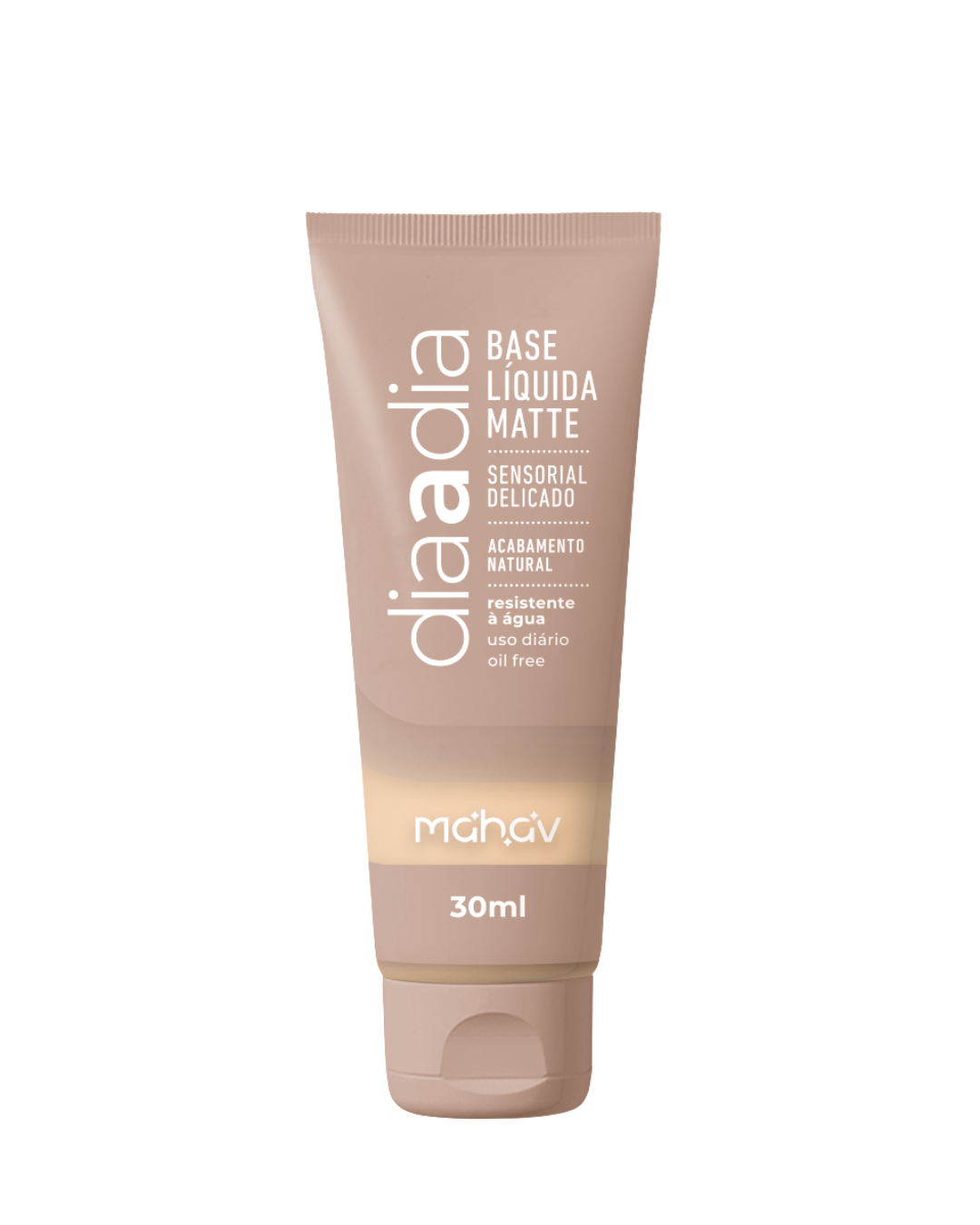 Aplique a Base Líquida Matte Dia a Dia Mahav com o auxílio de um pincel, uma esponja ou os dedos, espalhando o produto em todo o rosto e pescoço. Sele com pó compacto ou translúcido para melhor fixação.
