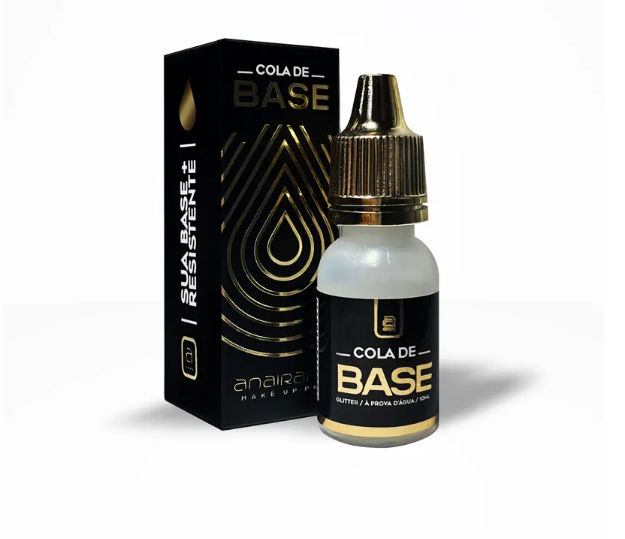 Em Glitters e Pigmentos: Para fixar glitters e pigmentos, uma simples gotinha é suficiente para olho inteiro. Utilize uma superfície limpa para melhores resultados.