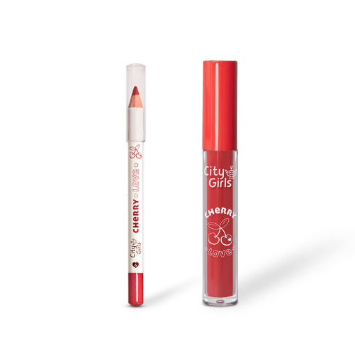 Os Kits Labiais Cherry Love City Girls foram criados para quem busca o lip combo perfeito com praticidade e estilo. Cada kit vem com um lápis labial e um batom líquido matte na mesma tonalidade, garantindo uma combinação harmônica e fácil de usar.